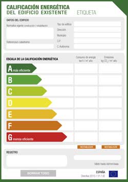 - Calificación energética. Se realiza de manera gráfica mediante la etiqueta con la codificación de colores.