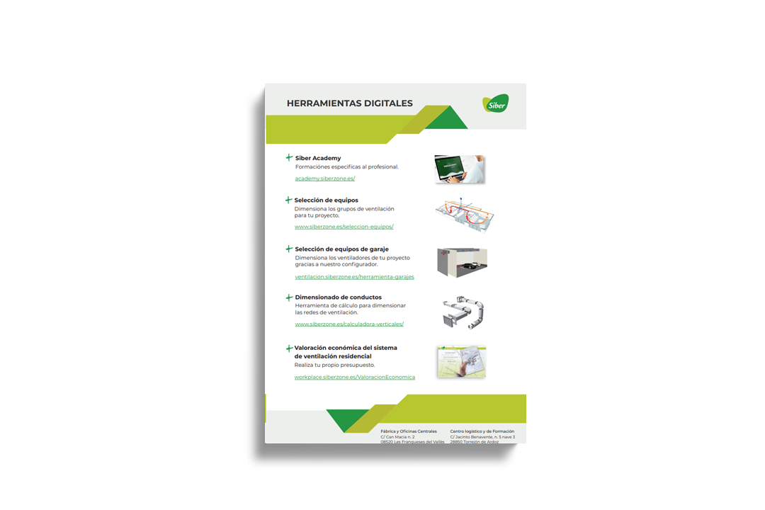 El documento "Herramientas digitales Siber" ofrece una serie de recursos y herramientas digitales desarrolladas por Siber para apoyar a profesionales en el campo de la ventilación. Estas incluyen: