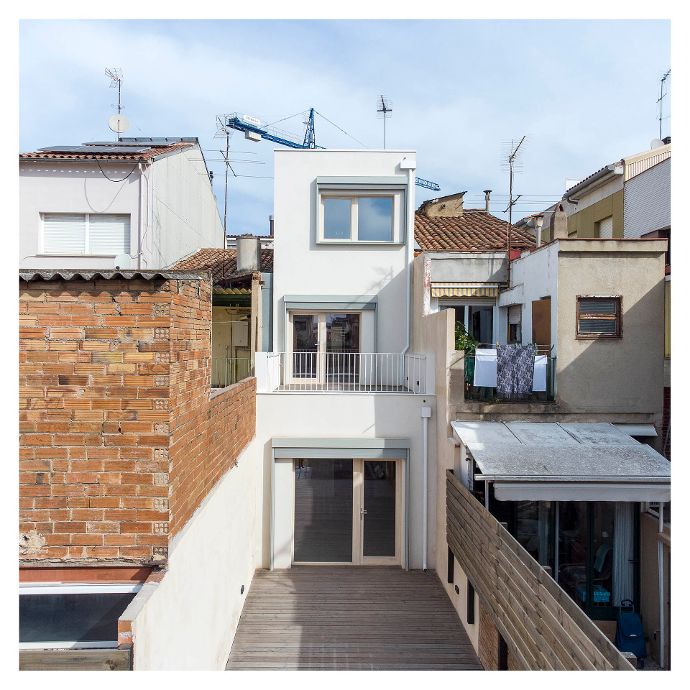 Construcción de casa biopassiva entre medianeras dentro de la ciudad de Sabadell, gracias al concepto de Blauhaus arquitectura que sigue la filosofía de la rehabilitación de antiguas casas inglesas del s.XIX, en este caso se ha construido con el apoyo de Haus hábitat que ha centrado sus esfuerzos en estándares passivhaus con el objetivo de reducir el consumo energético.