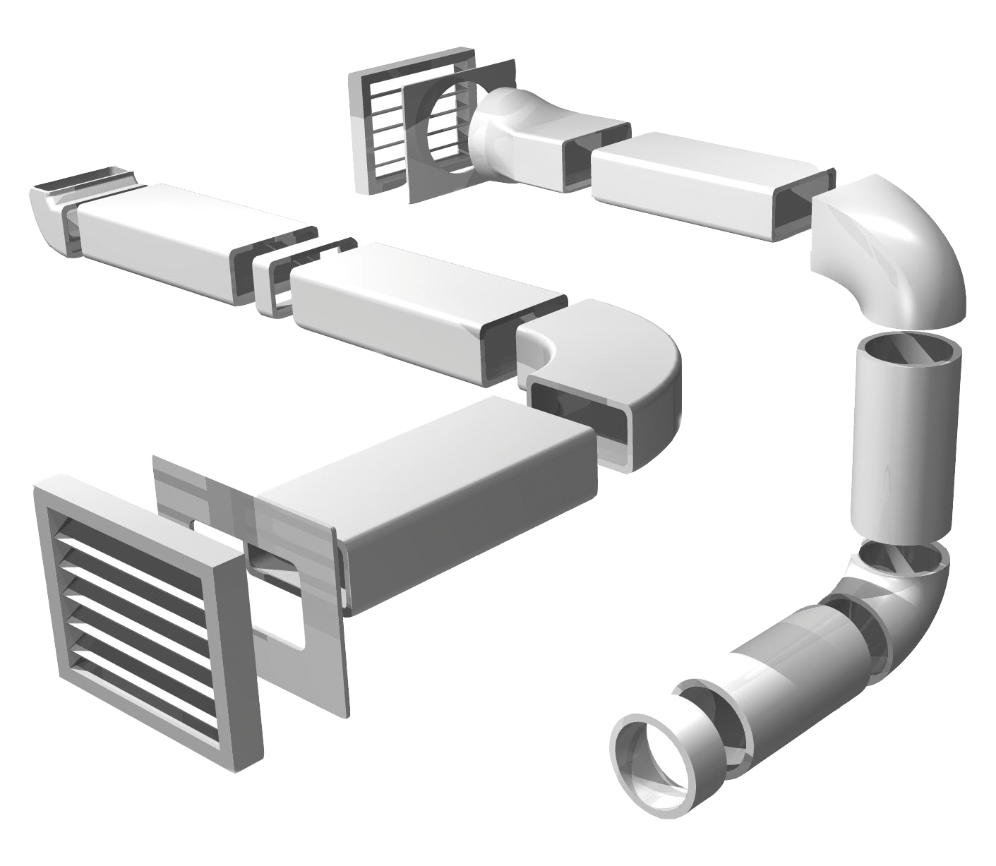É uma rede de ventilação de condutos e acessórios termoplásticos para sistemas de ventilação autorreguláveis.