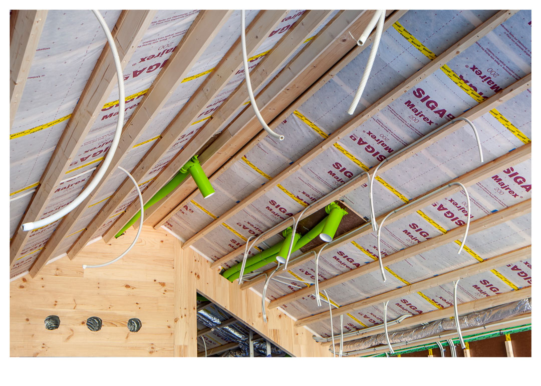 - Um sistema de construção industrializada, de qualidade e preciso: estrutura mista de estrutura leve de madeira e CLT.