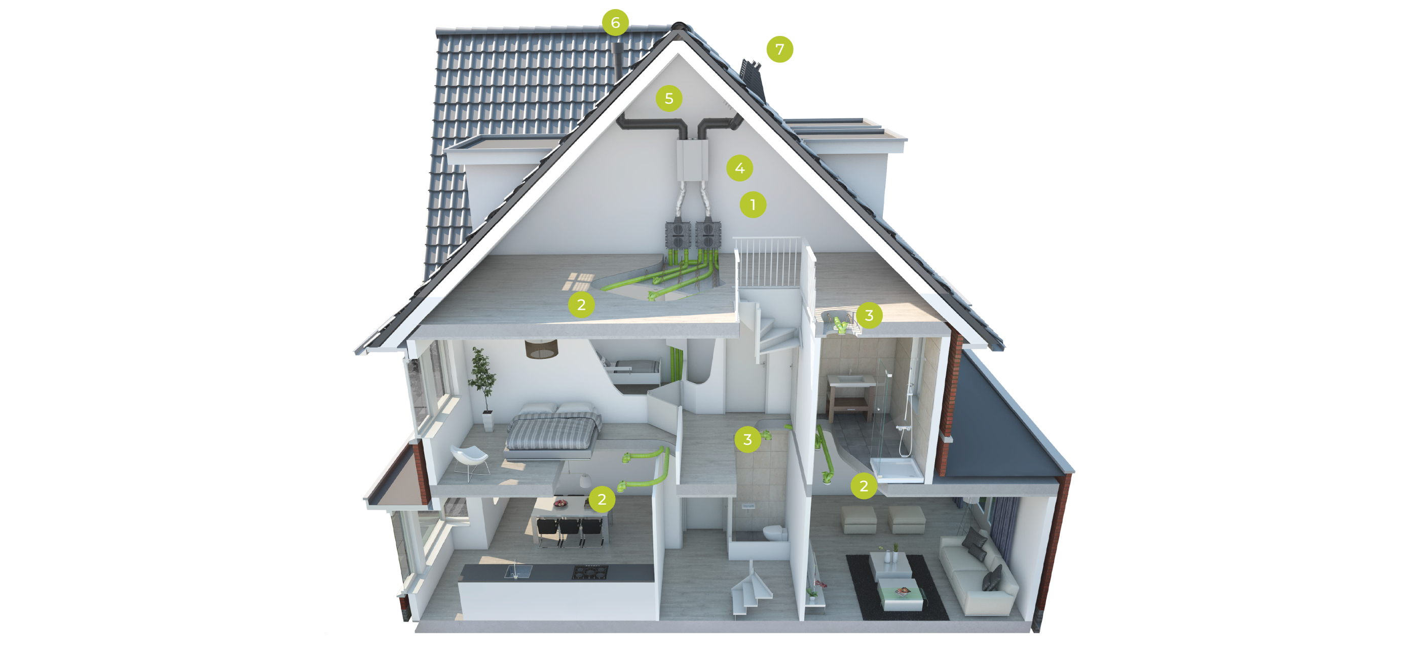 O nosso sistema permite adaptar a instalação a habitações de diferentes configurações com a garantia de uma ventilação contínua e eficiente.